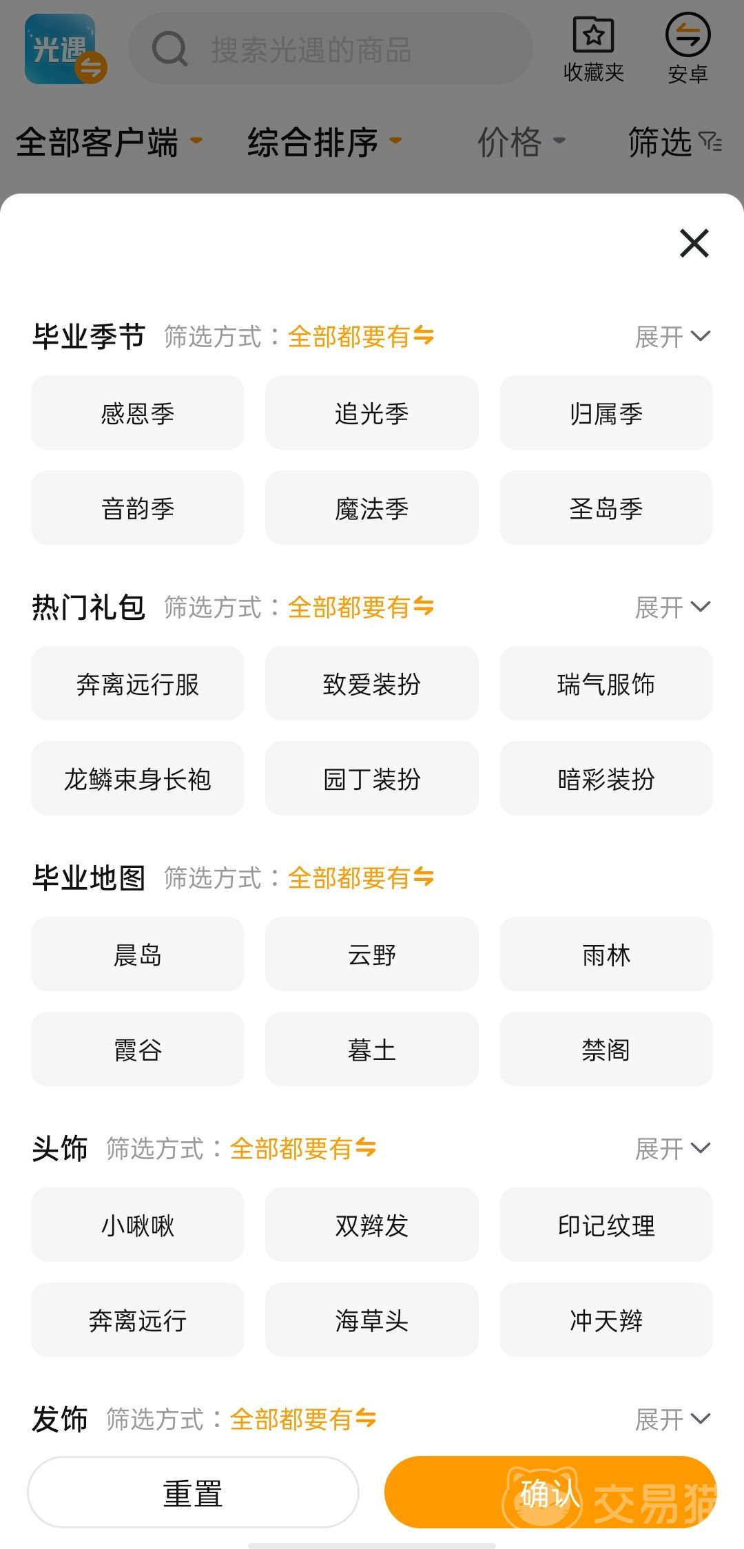 对用户来说账号交易平台的直观感受非常重要,像光遇这款游戏的账号平台都做出了毕业季节、热门礼包、毕业地图以及头饰和发饰等等的分类,自己有哪些东西在账号出售之前可以优先勾选一下看看和自己差不多的账号卖多少,这样也不至于盲目的出售被人秒拍。对买家来说比如想要个有大耳狗斗篷的账号也可以直接勾选定位,非常人性化的设定。