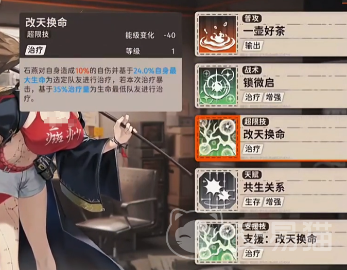 “改天换命“作为支援技能,石燕依然不负众望。通过19.99%自身最大生命的基础治疗,她能够在关键时刻为队友提供生存保障,确保团队整体的延续性。