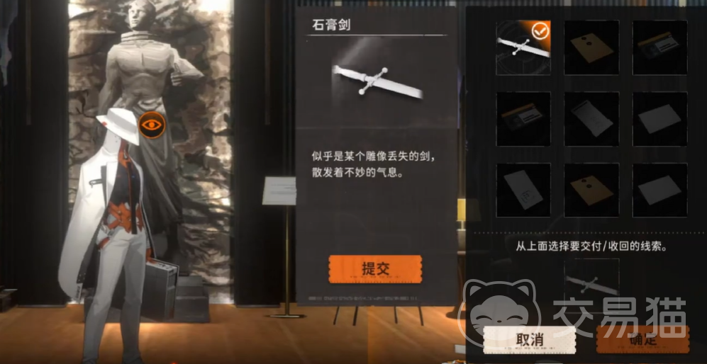 继续前行,我们会去到4号展厅,在地上看到一把无人问津的石膏剑,但这个地方却不是它原来放置的位置。我们会去到三楼的5号展厅,与英格丽特简短交谈后,潜入通风管道。这时,一个关键任务就会浮现:将石膏剑归位。这个时候你只要将石膏剑插到后面的雕像即可,这是揭示9号线索的重要环节。