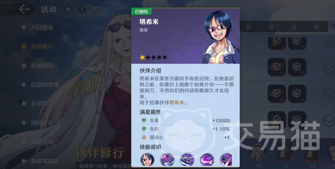塔希米是一个免费赠送的上分伙伴,是一个强势的角色。很多的玩家都会关注这到底是一个什么样的角色,还有哪一些主要的优势?航海王壮志雄心塔西米到底怎么样呢?如果大家有兴趣就可以看一下接下来的介绍,只要跟着看完就能明白这一个角色的实力。
