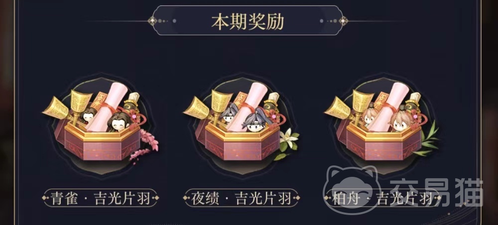同样,傅融的限定奖励包括恋念剧本开启道具夜绩吉光片羽,可以用来开启傅融剧本《夜绩》,袁基兰台限定奖励包括柏舟吉光片羽,可以用来开启袁基专属恋念剧本《柏舟》,通过获得这些限定奖励,可以丰富殿下们的角色剧情体验。