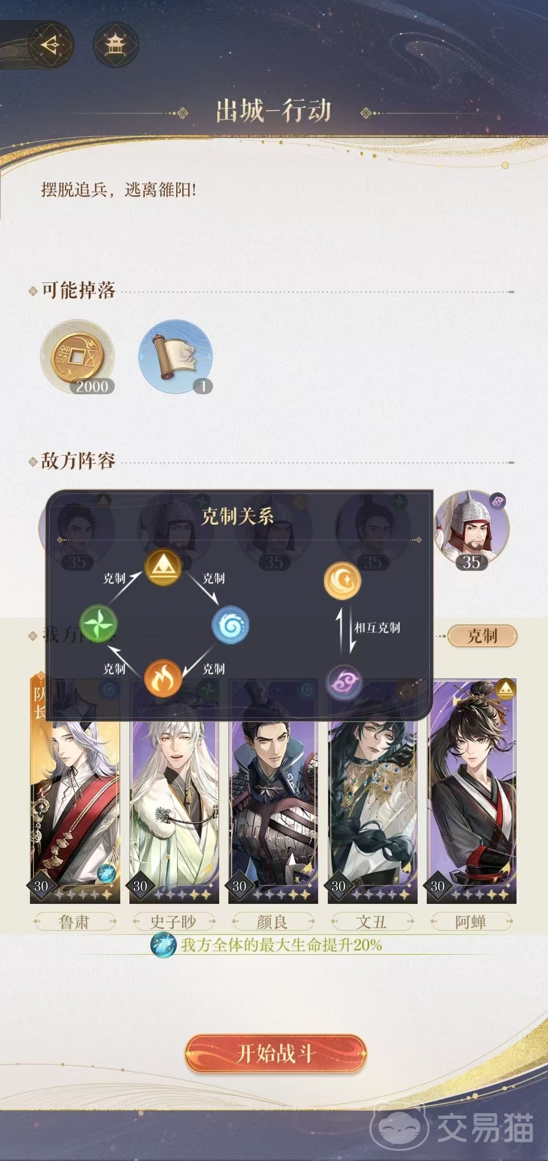 除此之外在如鸢游戏中最为关键的是所有的密探都有对应的属性,游戏中了6种属性分别是地火水风和阴阳,相互之间克制。在进行战斗的时候可以根据双方的属性来进行阵容的搭配并且在游戏中地克水、水克火、火克风、风克地、阴阳属性是相互克制。