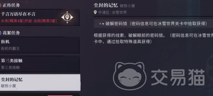 回报醉笙也会提供一个密码,就是"2587",在大家去了照相馆之后找到宝箱输入之后就可以打开了紫薯的密码箱也是很特别的一个宝箱,需要接受子鼠的邀请,其中的猫鼠游戏在完成小游戏之后,不仅仅有钥匙,还能够得到相应的密码"1250"在输入之后就可以开启了子鼠的密码箱。