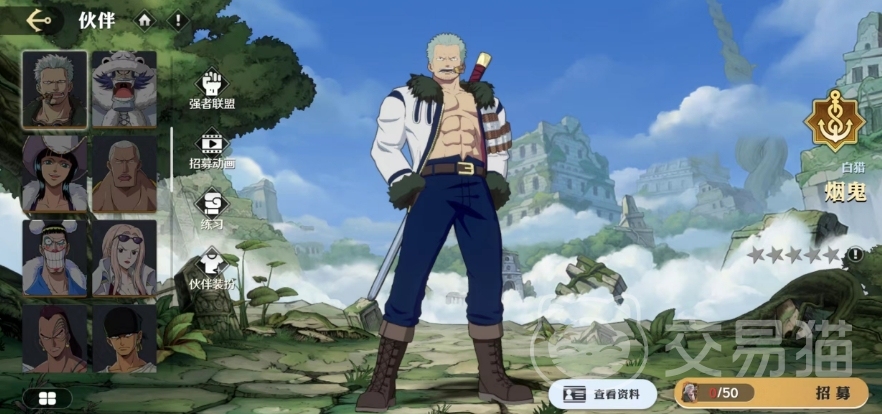 烟鬼其实因为自己的实力是一个备受粉丝喜爱的角色,游戏设定中他不仅是海军中的精英,还是一个拥有自然系恶魔果实烟雾之果的强大能力者,在游戏中,烟鬼的角色同样引人注目,尤其是他的技能和战斗风格,跟动漫中的效果有异曲同工之妙,烟鬼在游戏中的表现同样非常出色,他的技能设计充分体现了他在原作中的特点,因为他的援护技是白色烟雾弹,这个技能可以召唤烟鬼使用白色烟雾弹来捕获敌人,使敌人进入烟雾化状态,从而降低其移动速度。