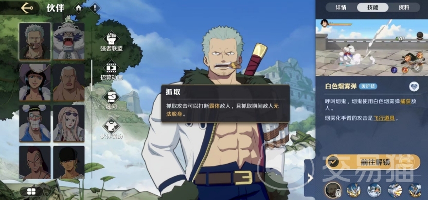在大家熟悉的航海王当中,有一位备受喜爱的角色叫做烟鬼,很多玩家都希望自己能够掌握他有的技能,所以航海王壮志雄心烟鬼怎么玩大家也可以了解一下,在最新的航海王壮志雄心当中,这个角色也是再次制作上线,很多经典的能力也从动漫中搬到游戏当中,大家现在可以亲手使用烟鬼的能力了。