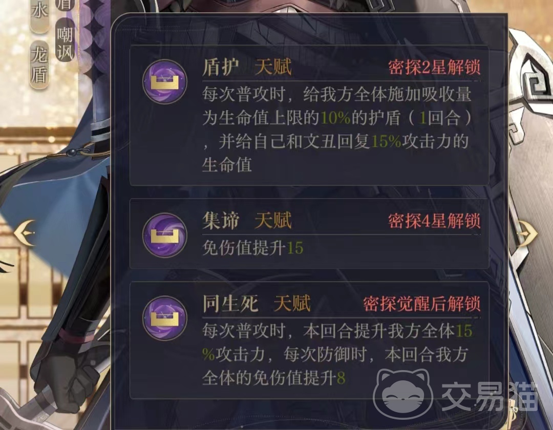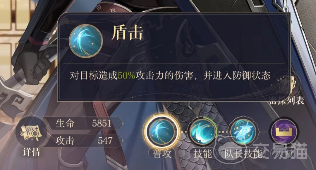 首先给殿下们介绍的是颜良的普攻技能,虽然盾击技能只能提供50%的伤害,但是相较于其他密探,颜良能够做到攻防合一,不用额外消耗一回合次数而是在攻击的同时直接进入防御状态,可以有效抵御敌方阵容的首轮攻击。