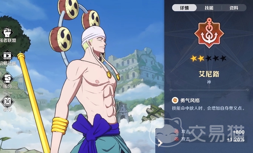 伴随游戏再次开启测试内容,在卡池中给玩家们开放了多个角色,这些角色都参考了经典影视作品海贼王的内容,航海王壮志雄心艾尼怎么样,艾尼翻译来自于【Enel】这个角色名字,这个角色象征代表了能量,在游戏中玩家们可能更加喜欢称呼它为艾尼路,不过他们就是同一个角色,只是翻译上存在了偏差。