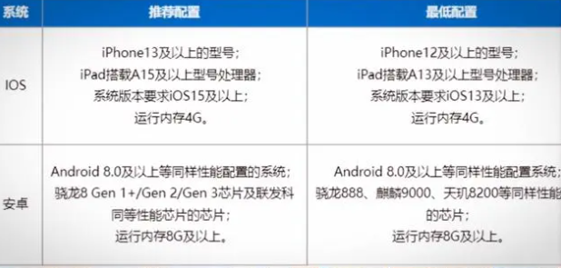 游戏在配置上没有太多的要求,iOS系统要求在iOS15以上,最低的标准最起码在iOS13以上。尽量搭载a15以上的处理器,如果是安卓系统可以选择安卓8.0以上。运行内存会有所区别,iOS系统是4g,安卓系统是8g。