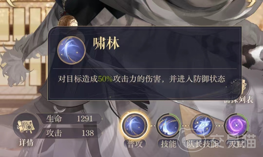 虽然严白虎的普攻技能啸林只能提供50%的攻击伤害,但是可以在该出招次数内同时进入防御状态,不用再额外消耗一回合才能进入防御状态,相当于用防御效果弥补该回合内攻击力不足的状况,也可以减少严白虎在敌方回合下的攻击损伤,不至于直接被敌方阵容直接秒杀。