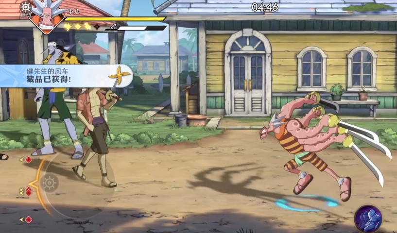 在调查这个城镇时遇到渔人阿龙欺负城镇上的居民,撒花布路见不平拔刀相助,在战斗过程中就能获得风车藏品。战斗结束后完成5-2勇敢的海上战士章节。