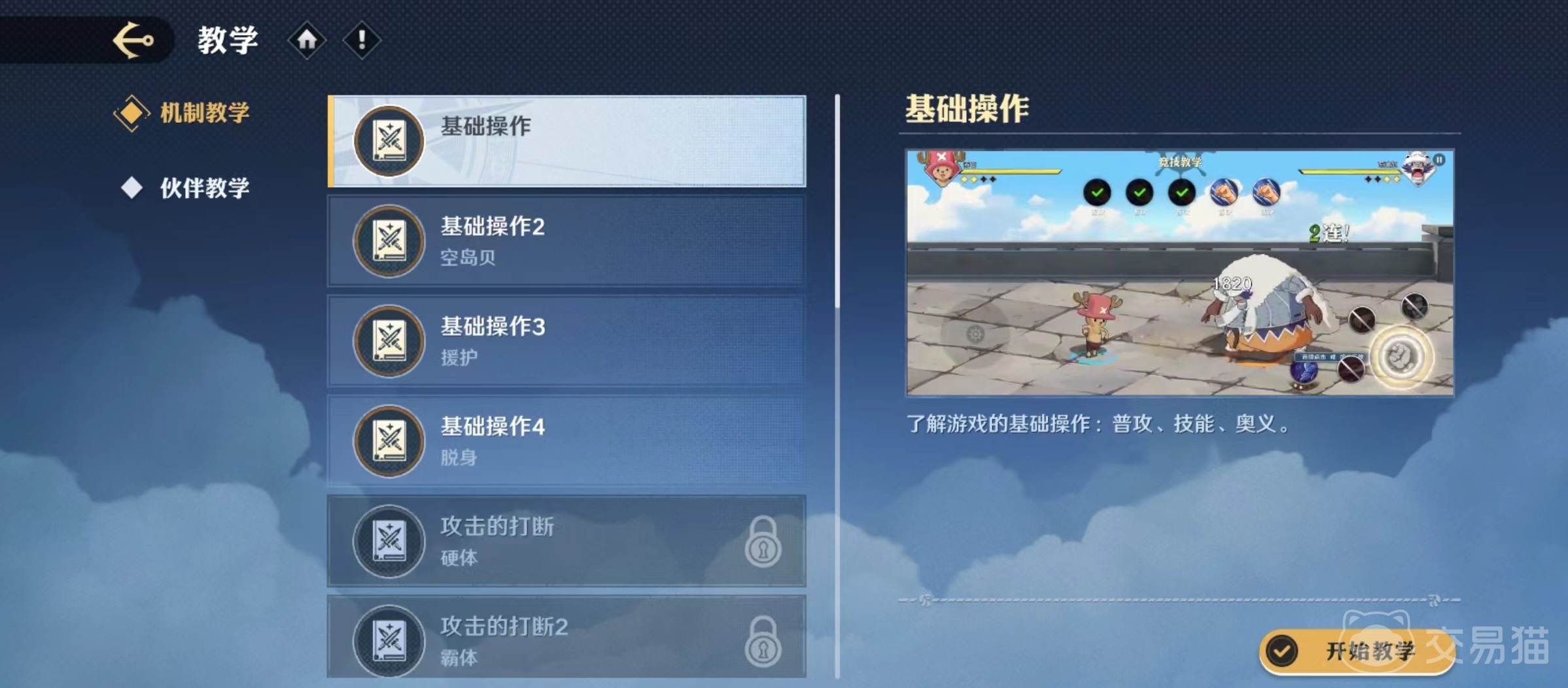 对于这款格斗类游戏,大家首先要掌握好相应的技巧,这是很多活动的基础,游戏中的格斗包括基础操作、援护、脱身、硬体、霸体、破招,连招保护以及不同的角色战斗风格等,这些都是大家需要提前掌握的。为了能够清楚地了解,大家需要打开竞技选项,然后在教学过程中将这些所有的技巧全部学习一遍,只有这样才能了解这款格斗游戏的精髓。另外除了机制教学之外,还需要体验一下伙伴教学,大家可以先找到适合自己的伙伴,这样才能更好的进行抽取。