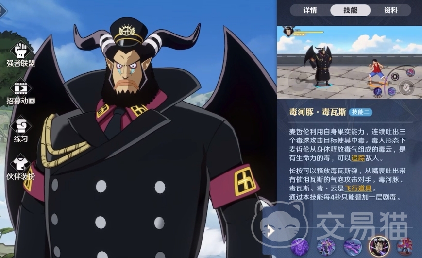 技能一这个技能是利用自身果实能力来释放毒素攻击,如果在毒人状态下毒素攻击强化至毒云效果,这个毒云还具有追踪效果;
