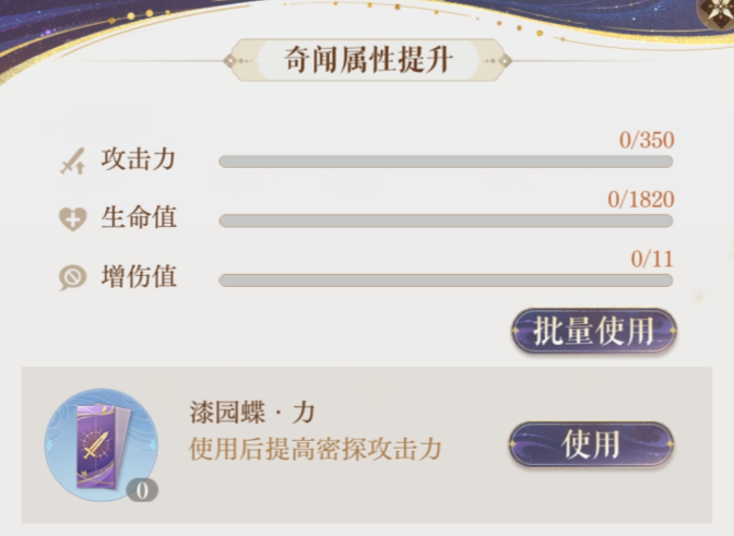 漆园蝶是可以给如鸢中密探提升奇闻属性的道具,属于一种养成材料,根据加成效果不同有力/体/攻/疗/防这五种。那么如鸢文丑漆园蝶加什么属性呢?不同的密探奇闻属性是不一样的,文丑对应的是攻击力、生命值、增伤值。这里就给大家说一说如鸢文丑漆园蝶优先级。