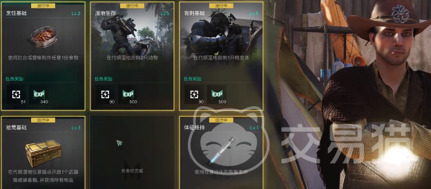 玩家可以看到所有的任务都可以接取,只需要按L 键可马上就可以打开任务列表,清楚的看到每一个不一样的任务详情。任务有很多不一样的玩法,主要是教导玩家基础的技能,比如烹饪技能,需要使用灶台去制作一份食物,可以是任意的食物,没有太多的限制性,湿地生存,还有背刺基础以及拾荒基地等等。
