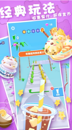 这个游戏里还有收集元素,赛道上散落着不同颜色的果汁,玩家得尽量收集和自己颜色一样的,这样不仅能加分,还能解锁一些隐藏的小成就。每次看到自己收集的果汁越来越多,心里就莫名有种成就感,就像是完成了一项小小的壮举。还有一些特别设计的关卡,真的是让人眼前一亮。比如突然出现的迷宫,或者是需要玩家在限定时间内完成特定任务的挑战,这些都让游戏变得更加有趣,也更加有挑战性。