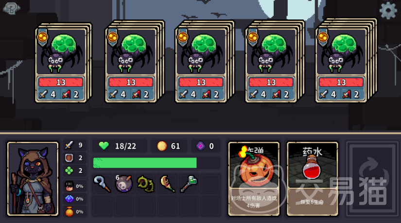 迷失之境作为一款独特的肉鸽卡牌游戏,玩家在游戏中可以解锁各种深入性玩法,除了基本的道具战斗以及特殊事件触发外,玩家还可以在游戏当中解锁当空接龙的玩法。通过一定的规则来挪动排队,包括玩家可消耗的一些道具拖动在面包当中,把玩家觉得可能使用不到的道具牌直接在右下角卖掉,但是每一次卖掉一张道具牌,玩家都需要经过一定的深思熟虑,可能对你有好处,也可能会导致你的游戏失败。而游戏当中的敌人是有互动buff的能力,有时候合理的使用敌军往往可以使友军的攻击能力提升,托盘机制更加灵活,策略性更强。