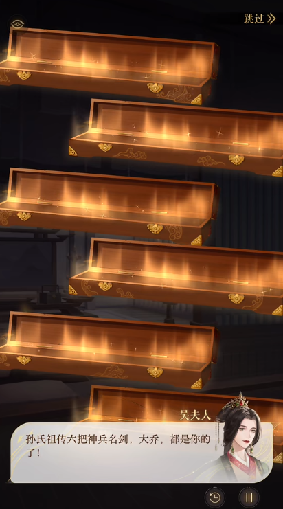 主线第5-5章节短暂见面后,就要等到5-8关卡才有相关的内容。解锁5-8关卡,与孙策的母亲吴夫人相见,得知她深信干吉的占卜,认定从南方而来的大乔正是孙策的天选老婆,想着送六把传家宝剑定下婚约,而广陵王误以为吴夫人隐藏的宝贝是天子玉玺,弄出一番令人哭笑不得的笑话。经一番试探出孙府没有秘密之后趁着混乱离开,想要进一步攻略孙策与解锁他的相见页面,就要通关第五章的主线。