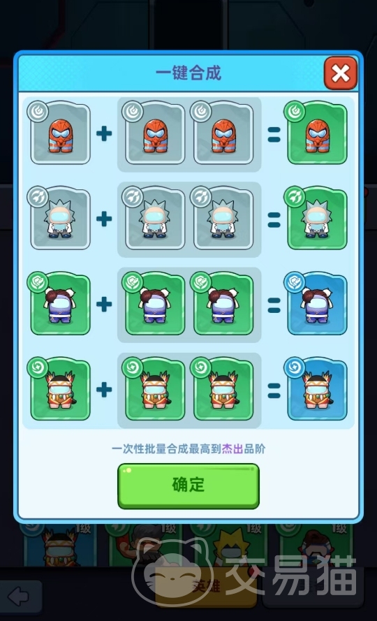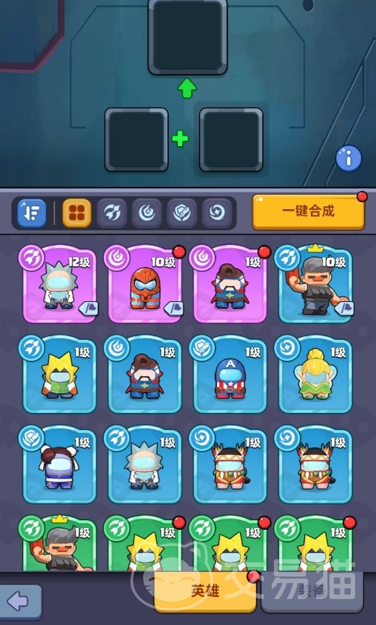 此外,若是玩家们觉得一个个合英雄太过麻烦,也可点选一键合成选项,该选项会直接将符合条件的英雄全部合成至下一品阶,可节约玩家们很多的时间,比较适合英雄角色素材过多时使用,或是在多次抽卡后,将抽出来的英雄角色素材全部转化为高品阶英雄角色,不占用太多空间。