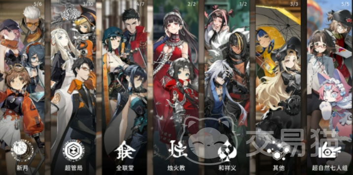 游戏中的角色被分为不同的派系,每个派系都有独特的背景和技能特点。新月小队和超管局是游戏中的主要势力,而全联堂、烛火教等派系则为游戏的剧情增添了更多神秘色彩。每个派系的角色都有不同的战斗风格,玩家可以根据自己的喜好与队伍需求选择合适的角色加入队伍。