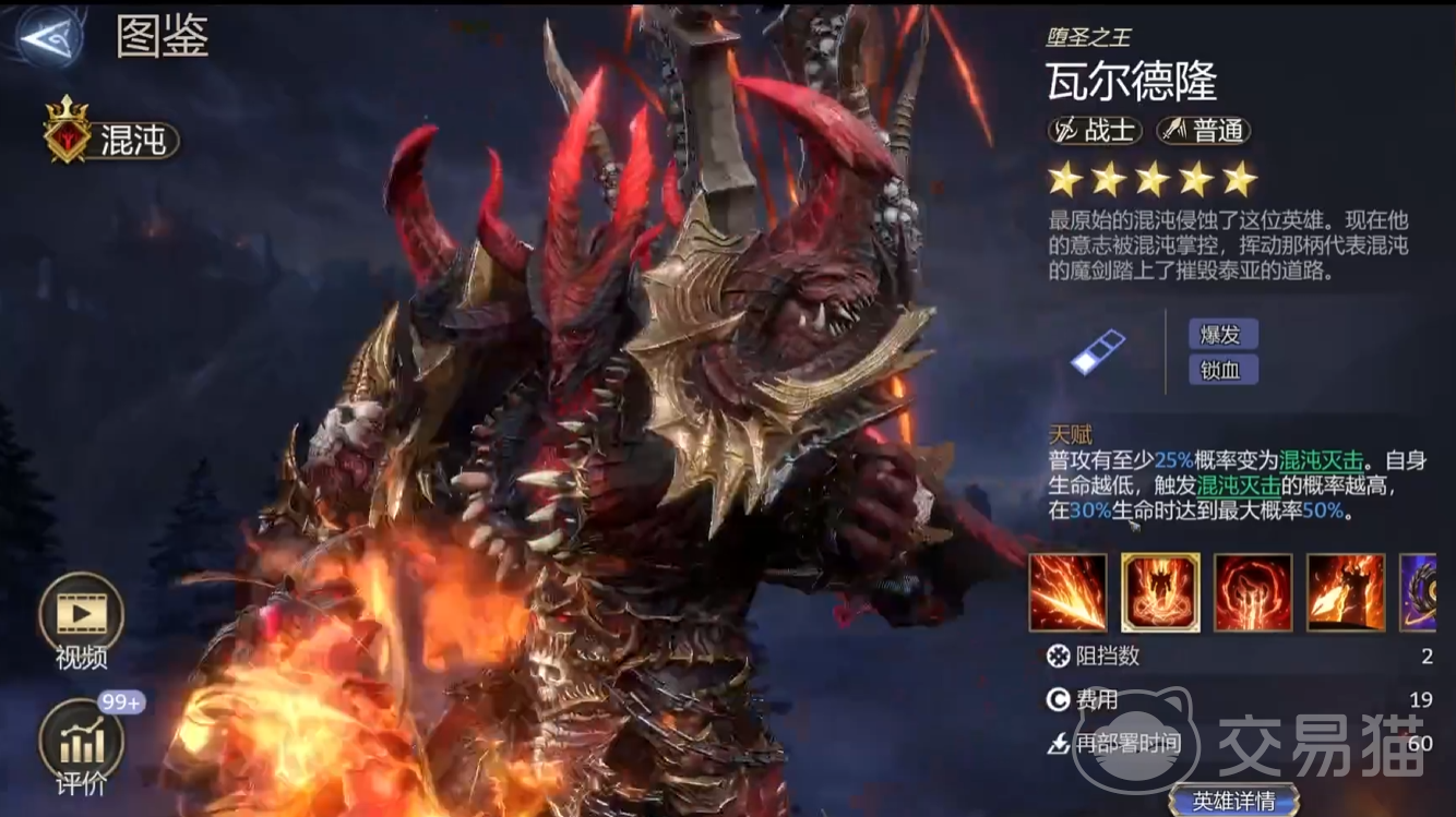 瓦尔德隆在施展普攻之后有25%的概率把普通攻击变为混沌灭击,当自身的生命值降低时,触发混沌灭击的概率也会提升,如果瓦尔德隆的生命值只剩下30%。那么触发混沌灭击的概率将会提高至50%。这一天赋再加上他的其他技能与属性,使得瓦尔德勒目前在游戏中的强度直接排在了t0的位置,如果大家运气好在卡池里抽到了这个角色,那么绝对是非常值得培养的哦。