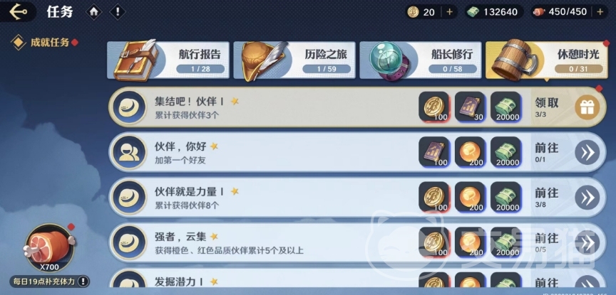 而这些任务通常与游戏剧情或角色发展有关,完成它们不仅可以获得奖励,还可以深入了解游戏的世界观和故事背景,有部分隐藏的成就任务需要船长自行探索才能发现和完成,这增加了游戏的趣味性和挑战性,但是日常任务则是大家每天登录游戏就可以做的任务,目前的任务系统分为航行报告、历险之旅、船长修行以及休憩时光四个部分,每个任务系统都为玩家提供了不同的奖励,其中最常见的奖励包括加固精华和贝里。