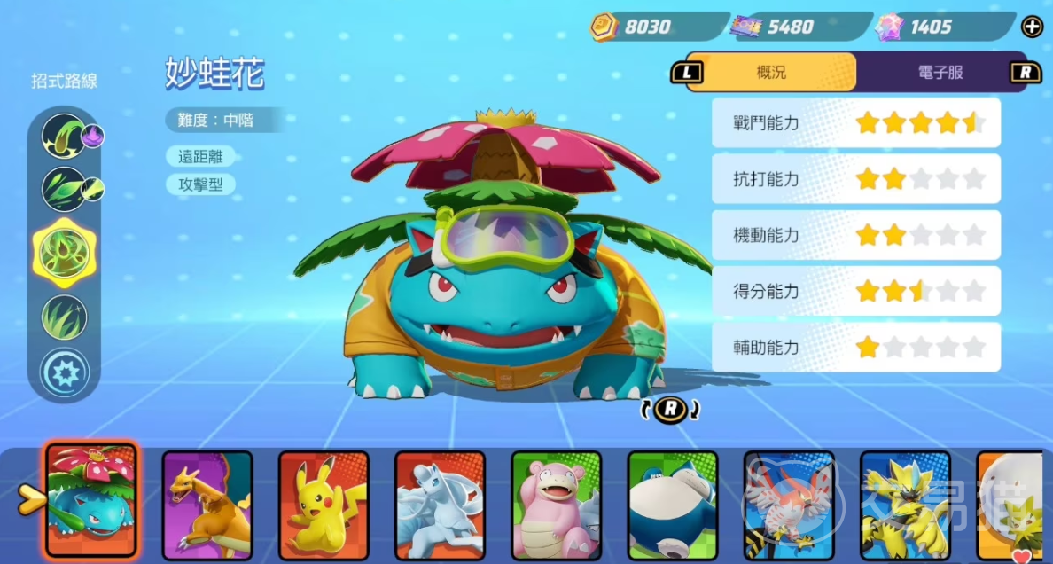 如果你更倾向于使用能够提供团队支持的宝可梦,那么妙蛙花将是一个理想的选择。它的"日光束"技能可以在一条直线上造成巨大伤害,而"花瓣舞"则可以治疗周围的队友。妙蛙花的技能组合使其既可以作为攻击手,也可以作为辅助者,在战斗中发挥多重作用。而且妙蛙花在血量较少时能造成更高的伤害,它的污泥炸弹技能可以对敌人造成中毒效果,非常适合持续消耗敌人。