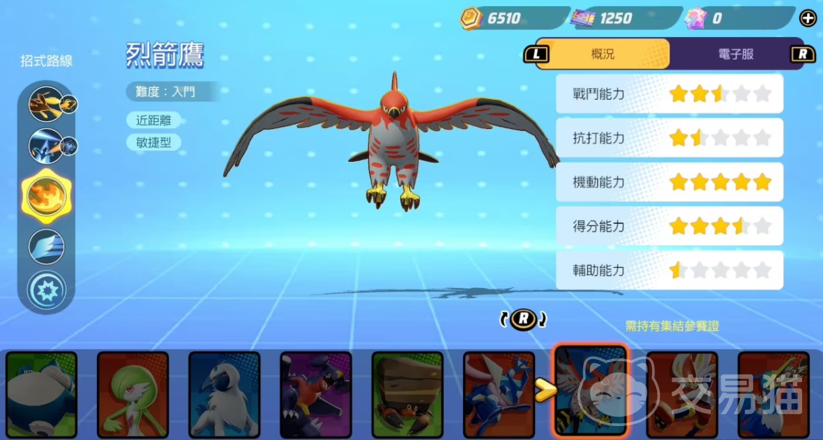 遗憾的是在目前的宝可梦大集结中,捷克罗姆还未正式登场。不过即便捷克罗姆尚未加入,游戏中仍有不少类似特性的宝可梦值得一试。例如烈箭鹰,这只宝可梦在血量充足时能获得移动速度加成,并且拥有强大的连续攻击技能,非常适合快速切入和追击敌人,而"燕返"技能则可以在攻击后迅速撤退,保持安全距。它的蓄能焰袭技能不仅能造成伤害,还能短暂提升移动速度,非常适合在战场上灵活穿梭。