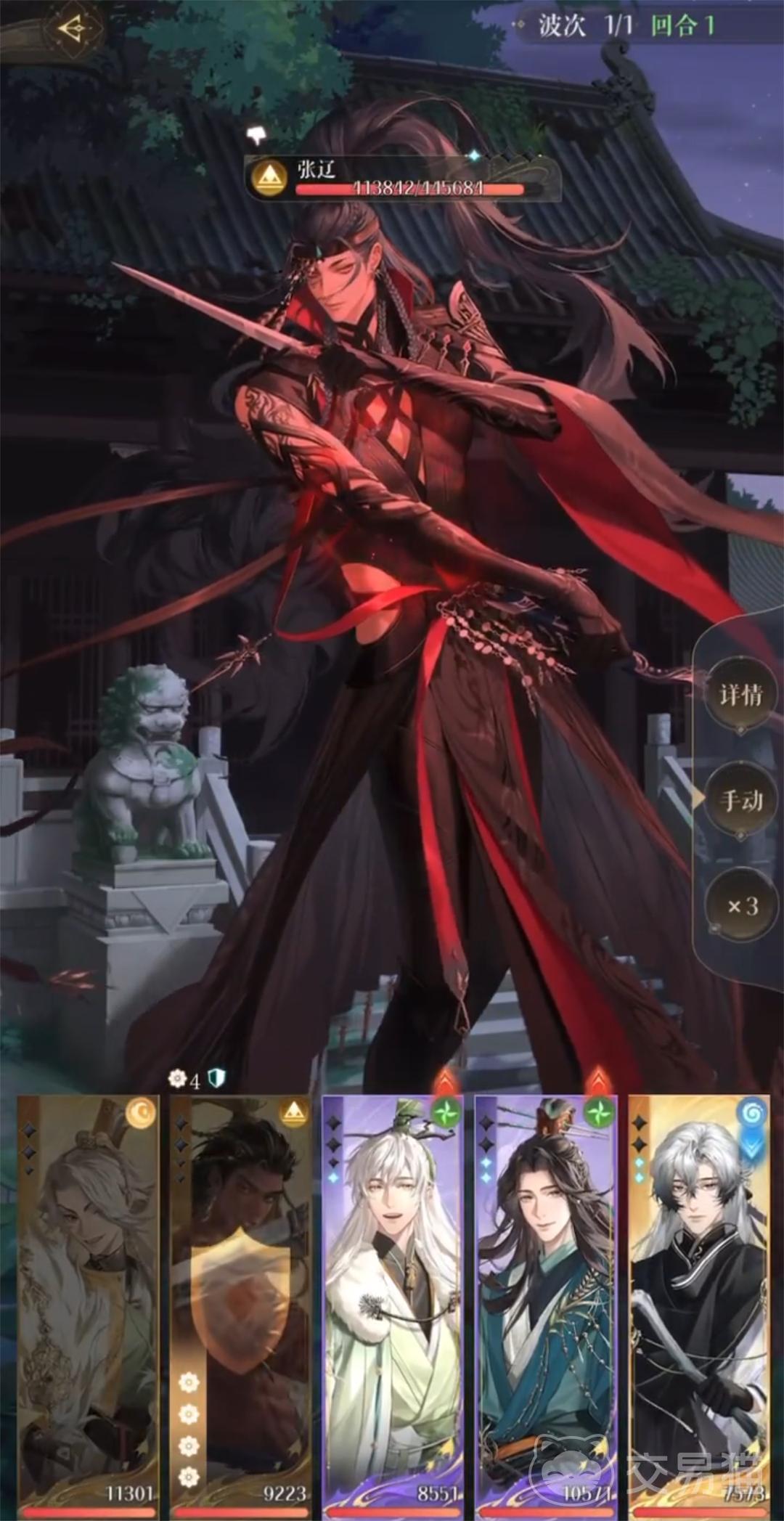 第9回合开始正常回血与输出,有大就放。等到第12回合,张辽放第3次大招,此时已经有18层的连击层数,这一回合决定玩家战斗成败。王粲千万不要放大招,而是选择下拉防御献祭出场,其他人正常输出即可。