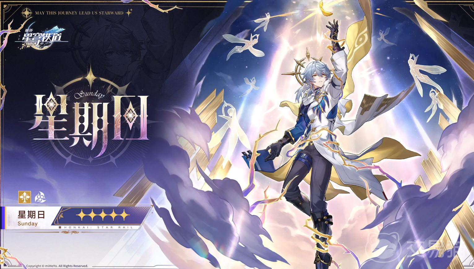 星期日他是天环族人,匹诺康尼的话事人之一,橡木家系的家主,更是角色知更鸟的哥哥,从角色立绘中我们可以看见和妹妹相同,星期日也是虚数同谐属性,手中接过知更鸟金色的羽毛,代表着已改过自新。