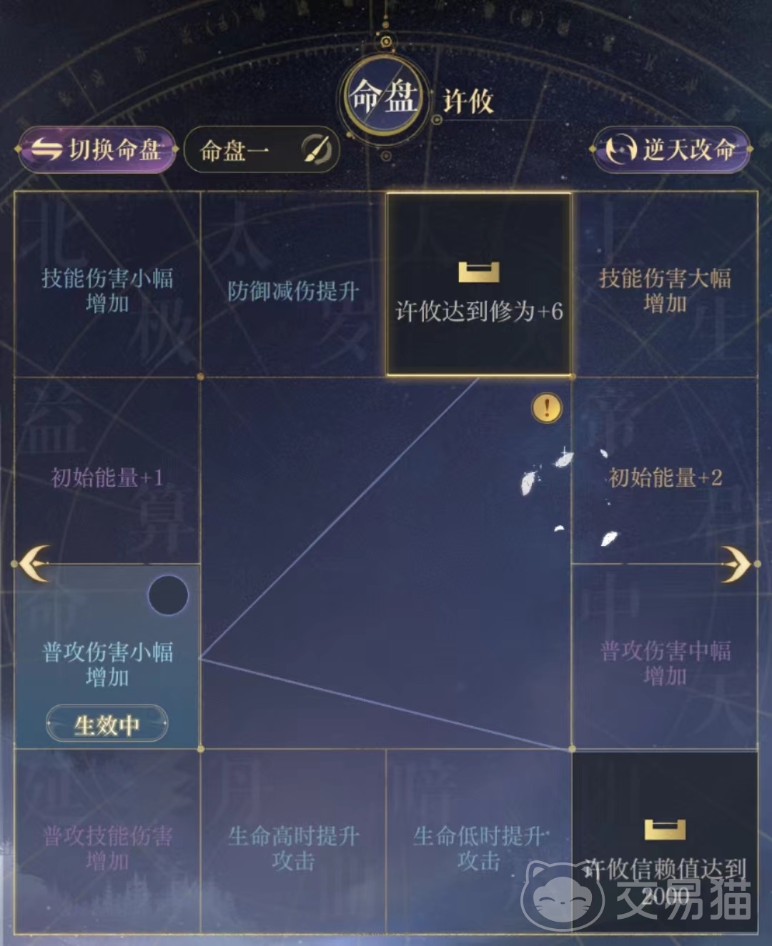 他的命盘也是以技能增伤为主的,有普攻增伤,技能增伤,还有防御减伤等等,比较推荐的就是各方面的技能和普攻增伤了,本身这个角色的单体伤害就是优势,普攻增伤加上的话,哪怕平a也能耗掉对方不少血量。