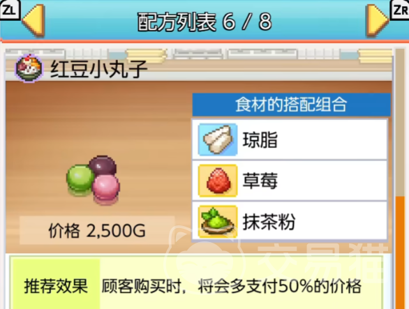 首先,抹茶粉可以与其他材料合成新的食物。例如大家所喜爱的红豆小丸子,便是由抹茶粉、草莓以及琼脂所制作成。售价为2500金币,特别是顾客购买时,还会多获得50%的金钱,让你获得源源不断的经济收入。