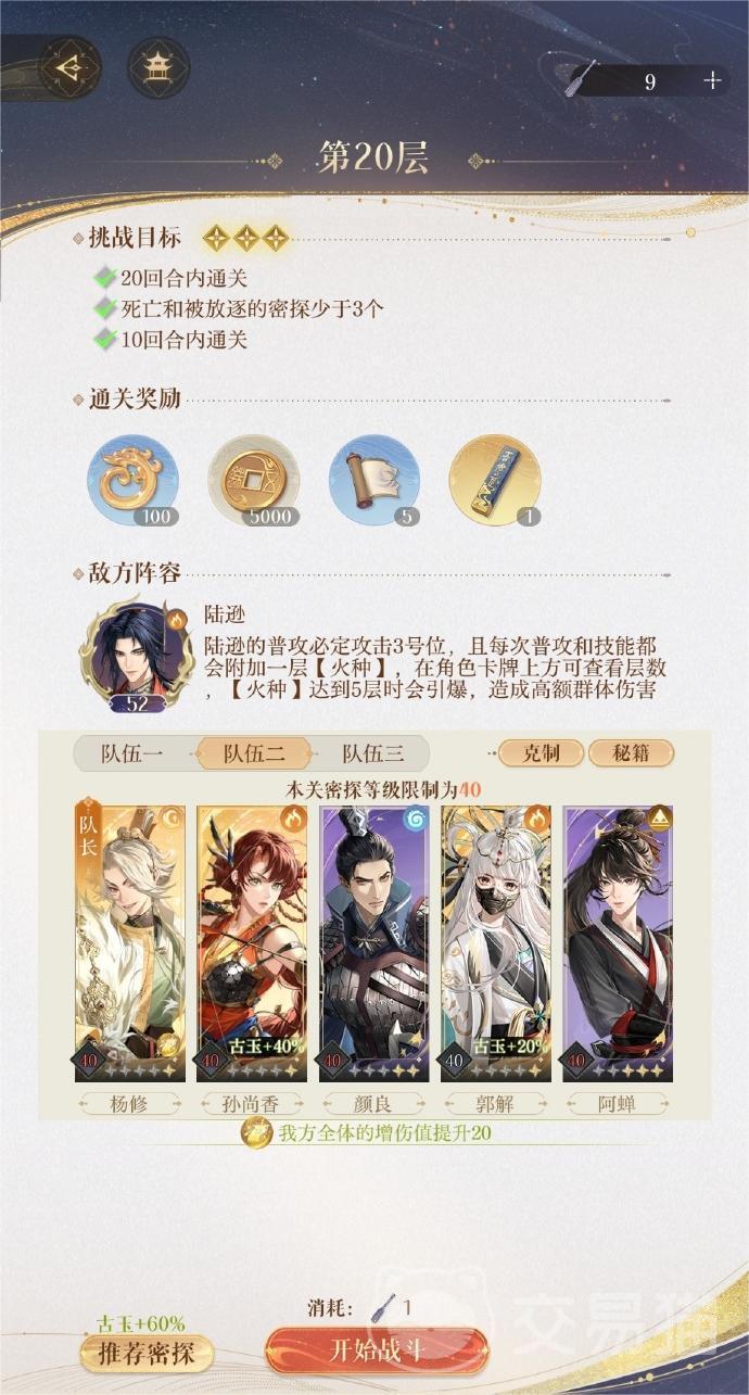 如鸢地宫20层怎么打 如鸢地宫20层攻略