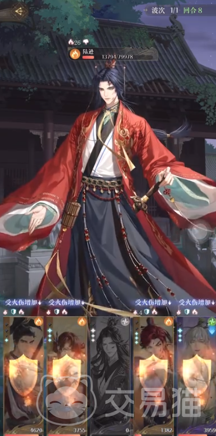 第1~2回合除了3号位置以外的密探进行普通攻击,大招都不要放,第4回合陆逊大招满,可以让3号位置的陈登退场带走身上的三个火种,而其余人身上没有火种,只需下拉防御即可。
