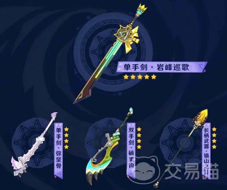 单手剑“岩峰巡歌”,新角色希诺宁的专武,拥有防御副词条,通过堆3200的防御来解锁25.6%的全队元素伤害加成。如果是将希诺宁作为主C,那么则可以给自身提供45%的增伤。单看防御面板,阿贝多、千织可用,辅助队友打核爆可以给水神用来堆防御。