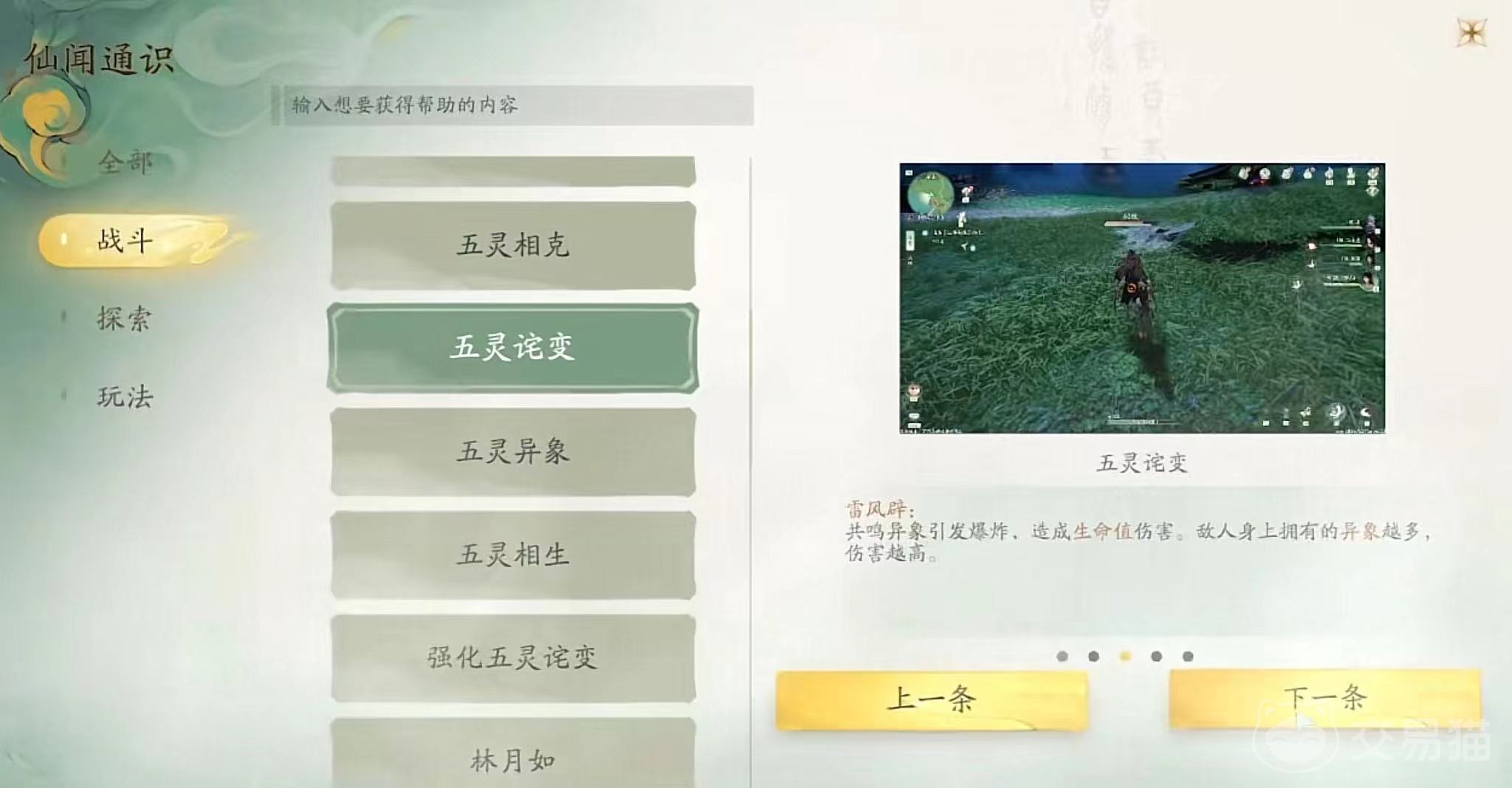 在战斗板块中给玩家们介绍了五灵相克、五灵相生以及五灵相关的其他内容,所以说在战斗场景中合理的利用五灵属性引起的连锁反应能够大大提高玩家在战斗场景下胜利的概率。