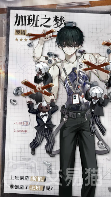 罗错的普攻会投掷出螺丝进行两段远程攻击,最后一段召唤一个同事木偶,同事木偶的伤害会受到生存技等级的影响;他的生存技会让自身被傀僵线提起浮空,一段时间后才会落地,在此期间自身会处于无敌状态,该技能十分适合躲避敌人的关键伤害;他的特性技会召唤一个老板木偶,这个木偶会自动向敌人移动并砸下,每次都会对其造成范围伤害。