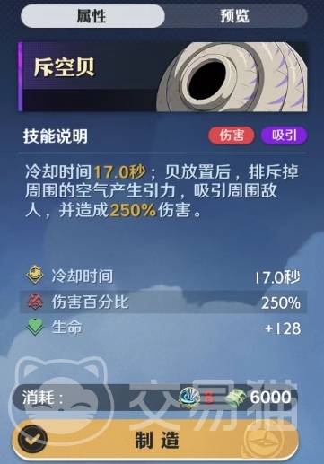 斥空贝是另一种带有伤害吸引效果的空岛贝技能,它的冷却时间同样为17.0秒,当放置斥空贝后,它会排斥掉周围的空气并产生引力,吸引周围的敌人并向他们造成250%的伤害,这个技能不仅可以对敌人造成伤害,还可以有效地聚集敌人,为己方提供更多的攻击机会,喷风贝是一种搭配角色比较多的空岛贝技能,它的冷却时间也是17.0秒,当手持喷风贝向前方喷风时,会对喷射到的敌人造成51%的伤害,并使使用者向后位移一段距离。