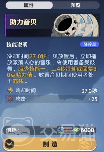 其次助力音贝是一种非常有用的空岛贝技能,它的冷却时间为27.0秒,虽然相对较长,但它的效果却非常明显,当放置助力音贝后,它会立即播放激荡人心的音乐,令使用者备受鼓舞,这个效果可以减少技能一二的冷却时间4秒或回复30点精力值,为玩家提供更多的战斗机会,此外在放置助力音贝期间,使用者还会处于霸体状态,这使得一些能够触达多次霸体的角色可以更好地利用这个技能。