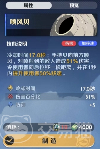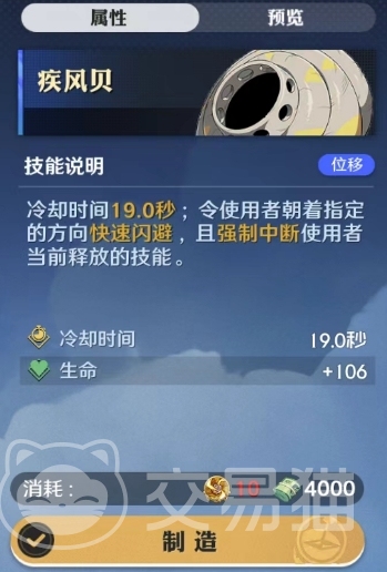 同时,在1秒内提升使用者50%的移速,这个加移速的效果是喷风贝主要可以利用起来的优势之一,可以帮助玩家更快地移动和躲避敌人的攻击,游戏中的疾风贝是一种带有位移优势的空岛贝技能,冷却时间为19.0秒,当使用疾风贝时,使用者可以朝着指定的方向快速闪避并强制中断当前释放的技能,这个技能可以帮助玩家在战斗中灵活躲避敌人的攻击,增加生存能力。