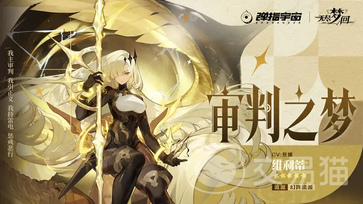 审判之梦的名字叫做”维利蒂”,是一个看起来比较高冷的女性角色,非常的霸气,幻阵流派的五星角色,是该流派的大C梦灵。普通攻击—诘问,可以对前面发动三段弹幕攻击,前两段的攻击每一次都会发射一个”疾电判决”,第三段连续3次射出”疾电判决”,并会对敌人附加”雷罚”并造成伤害。