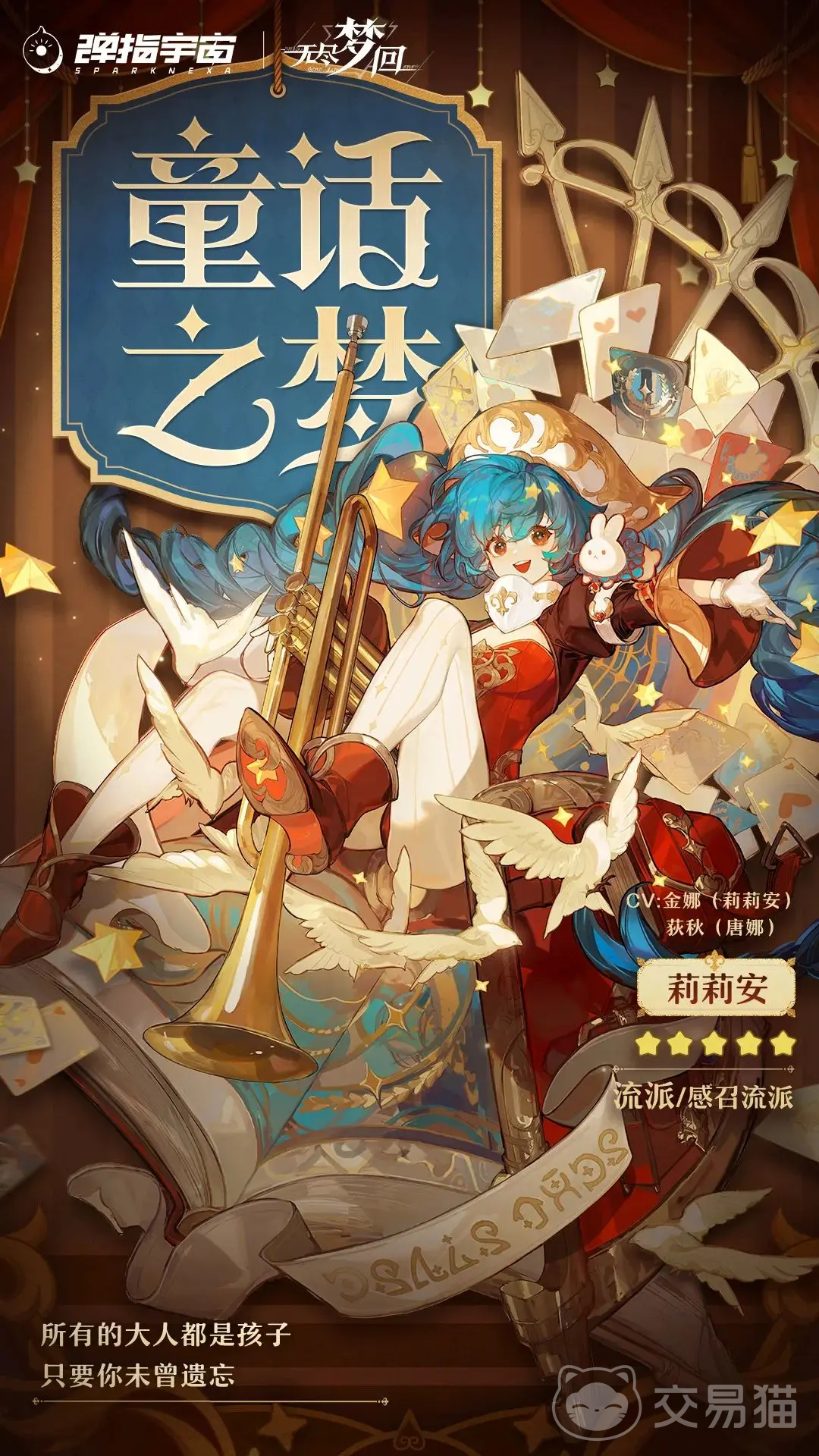 童话之梦叫做”莉莉安”,她是感召流派的五星角色,外形非常的可爱,而且在她的身边总是带着一个和白兔一样的骑士,这个骑士叫做“唐娜”,他对于莉莉安的战斗助益作用很大。在战斗时可以被主人强化,同时能获得能量,通过自身获得的不同程度的能量,从而释放出不同程度的攻击,一阶时可以挥砸三段巨锤来攻击敌人,二阶时可以锁定一个敌人,并且直接位移到敌人身边,使用巨锤下载造成伤害,三阶时跳起下砸巨锤,对敌方造成多段损伤。