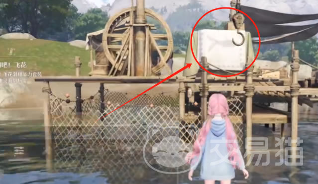 最后是钓大鱼,先要跳到码头边的小船上,注意这里有两条船,如果找不到就换另一只船。我们在码头上可以看到上面垂下一个大大的吊钩,然后在船上能看到这个吊钩,同时可以看见一块展开的画布,画布上画了一条大鱼,调整视角将鱼钩对准鱼嘴部位就可以了。