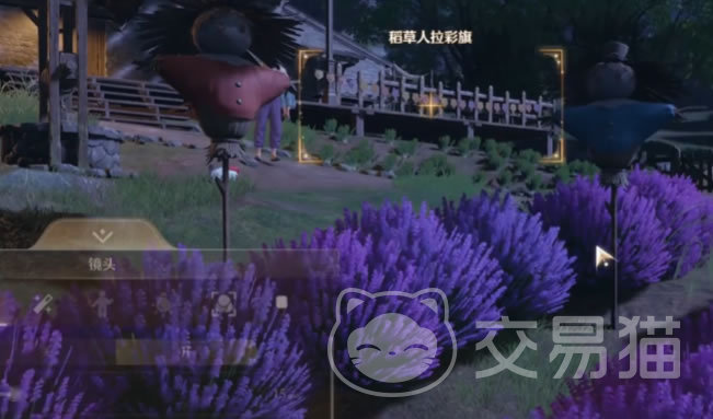 关于稻草人拉彩旗,我们在薰衣草花海中会发现两个稻草人,而彩旗则是在建筑物的前面。所以需要在稻草人前面往建筑方向去拍摄,调整让彩旗的两段正好在两个稻草人展开的胳膊端,就像它两正拉着彩旗一样。