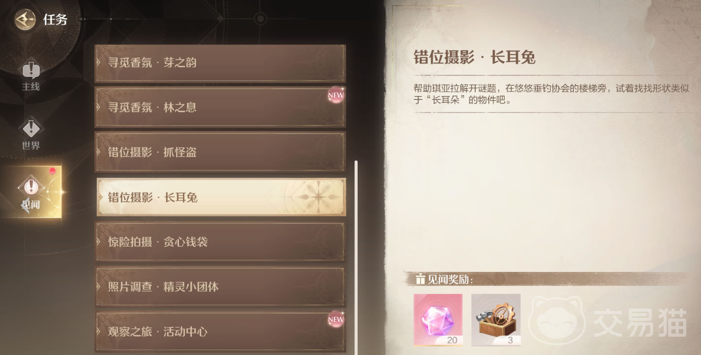 很多小伙伴在无限暖暖中接到了名为“错位摄影”的见闻任务,可能有些朋友不知道错位无限暖暖错位摄影怎么拍,今天小编就带来所有关于错位摄影任务的拍摄方法,希望对大家有帮助。在拍摄错位摄影时,有时需要天气适合,因为要用到阳光下的影子;有时则需要时间合适,比如晚上才会有的灯光,而最重要的是记住拍摄时隐藏主角暖暖,才能避免焦距对准人物从而找不到合适角度。