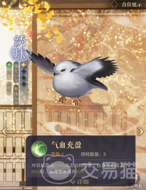 绣球的话,其技能主打的便是攻击,并且在角色自身的生命大于80%的时候,其效果往往也会更加的突出,能针对敌人造成伤害额外增加80%,所以只要绣球的生命百分比越高,那么就越容易触发这个额外的伤害增加。
