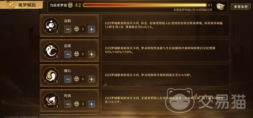 在这个玩法中,有着一个噩梦赋值的机制,这个噩梦值越高关卡的难度也会更高,大家在开始闯关前是可以自行去调整噩梦赋值的,不过这个数值也会直接影响到玩家在关卡中的一些增益状态。