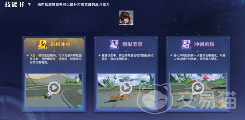 “溅射笔墨”,使用这个技能书在进入瞄准状态后,打出的笔墨会在路径终点处爆炸,造成范围伤害,适合拿来远距离攻击较为密集的敌人,配合“章草”有很好的拉扯效果。“冲刺重伤”,用这个技能冲刺最后一段会被强化,额外伤害加僵直,主要是用于拉扯近战敌人,在连招中可以穿插普攻让连招的衔接更顺畅。