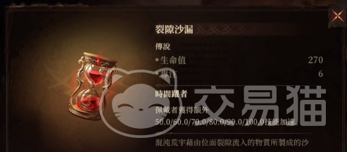裂隙沙漏能提升角色的270的生命值和6点的专注力,它拥有让技能冷却更快的效果,大家将其安装在一些需要先手攻击的角色身上非常好用,也可以安装在法师类的角色身上,这样一次对局可以多出很高伤害。