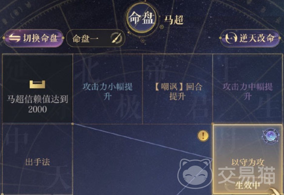 可以看得出马超的命盘有往增伤方面走,也有向生存方面走的,考虑到马超本身的定位,他的伤害系数是够的,本身输出不低了。更多是采用“西凉坚壁”+“出手法”的组合,这两个命盘要有。铁骑当千有负面效果不建议,以攻为守按个人需求。