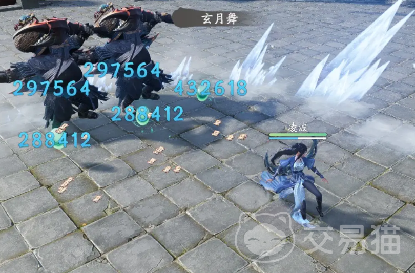 凌波的第一个技能叫玄月舞,释放的时候会召唤出轮刃围绕自身旋转飞行,靠近的敌人会被轮刃攻击对其添加水属性伤害并添加水灵元素,飞行过程中的轮刃不会因为玩家突然更换角色而消失,所以实战中可以运用角色切换,不会打断该技能的输出效果。